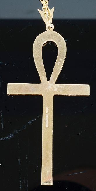 A contemporary 9ct gold Egyptian cross pendant on chain