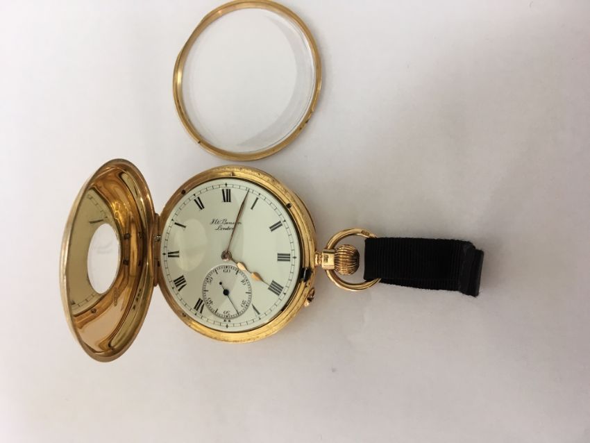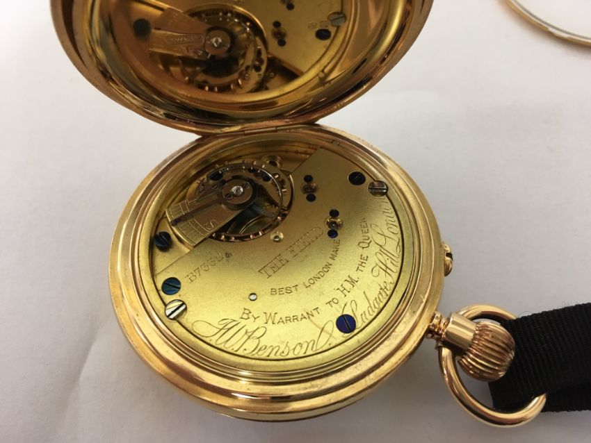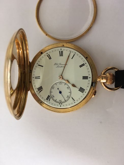 A 18ct gold J.W. Benson half hunter pocket watch,