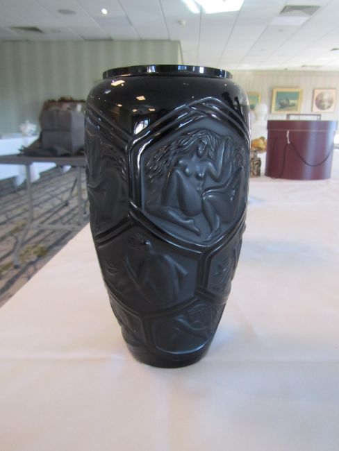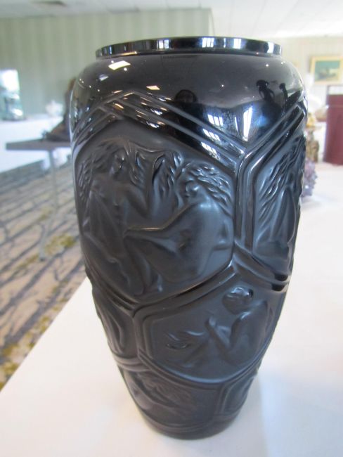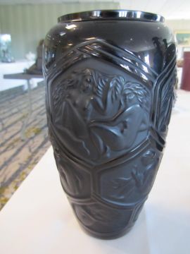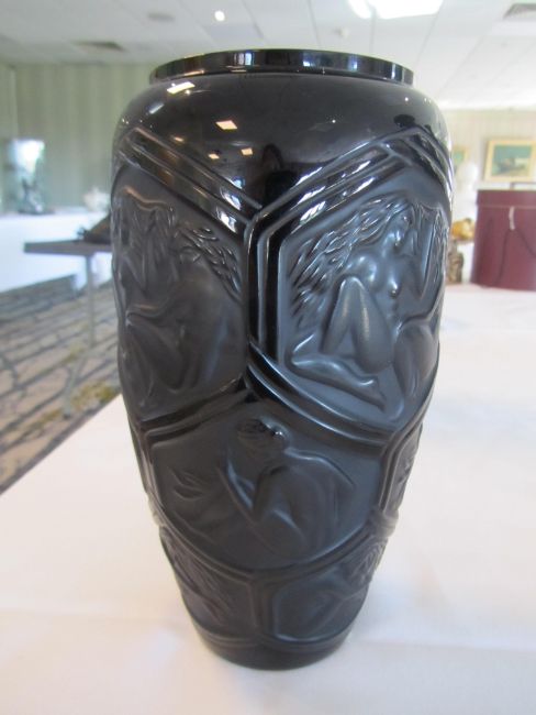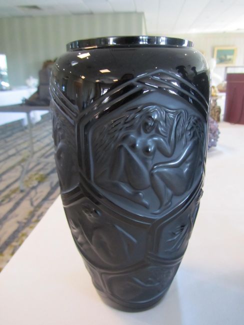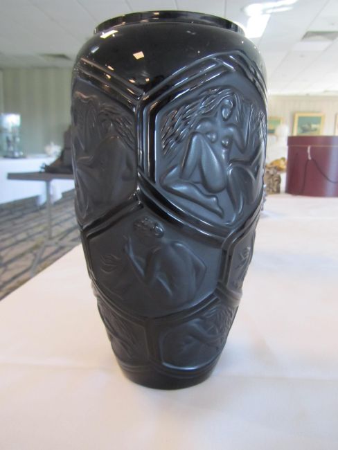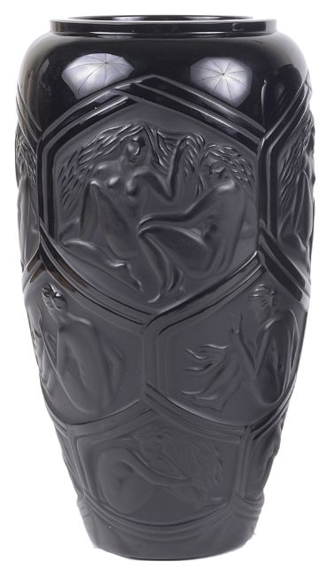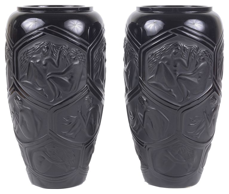 of ovoid form with hexagonal panels decorated in light relief of female nudes in various poses, (2)