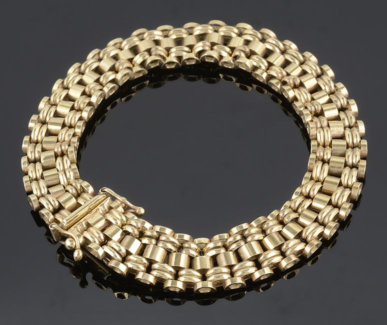 A 9ct gold articulated bracelet of bar link design