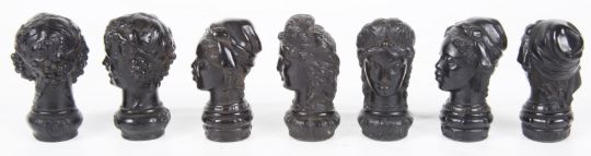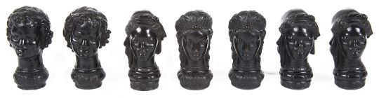 each one realistically modelled, some bearing fruit in their hair, each one with hole to base (7)