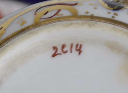 comprising two cake plates, slop bowl cream jug, eleven teacups, twelve saucers and side plates, underside with painted number: 2614, (qty).