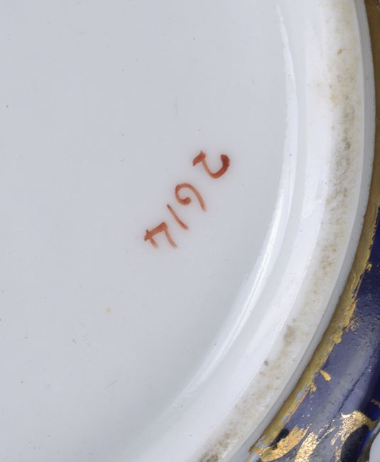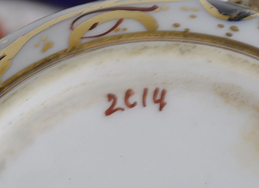 Condition: Fair, with wear throughout, gilding partial worn, one cup has hairline cracks.