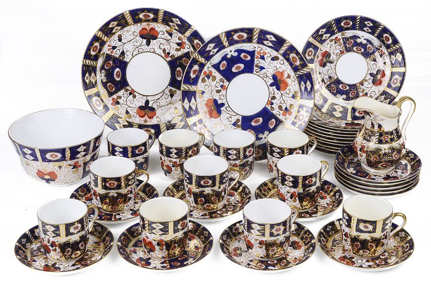 A Royal Crown Derby style 'Imari' pattern part tea service,