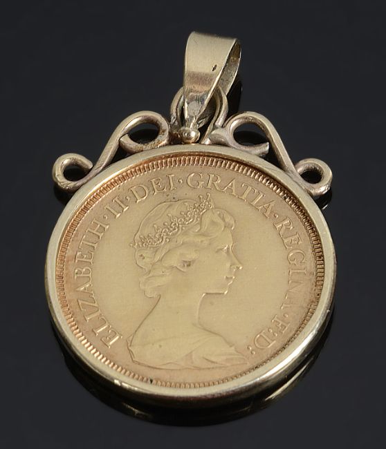 the full sovereign in a removable mount with foliate scroll and suspension loop