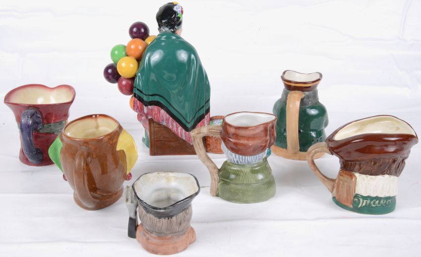 together with a Royal Doulton Toby jug 'Cardinal'; a Royal Doulton Toby jug 'Drake'; a Royal Doulton Toby jug 'Jester'; Royal Doulton Toby jug 'Honest measure Drink at Leisure' and two further Toby jugs, (7).