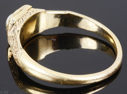 Condition: Pearl not tested for natural, some overall wear to mount, small edge damage to pearl
