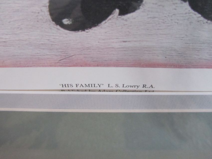 'His Family', print, signed in pencil lower right, with impressed blind stamp Fine Art Trade Guild B B A lower left, mounted in a wooden frame