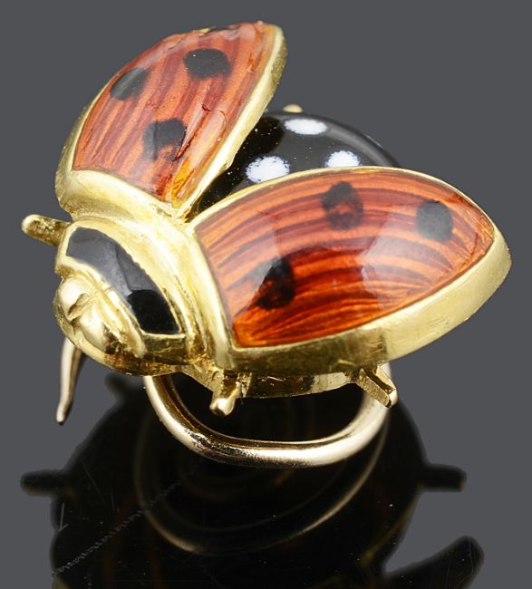 A charming 18ct gold and enamel ladybird pin by Berndt Munsteiner