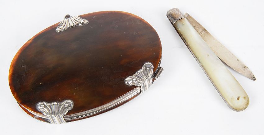An oval 18th Century silver mounted tortoiseshell magnifier