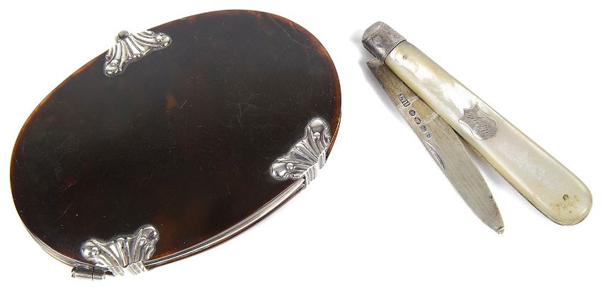 together with a mother of pearl and silver fruit knife, (2)