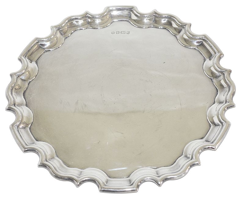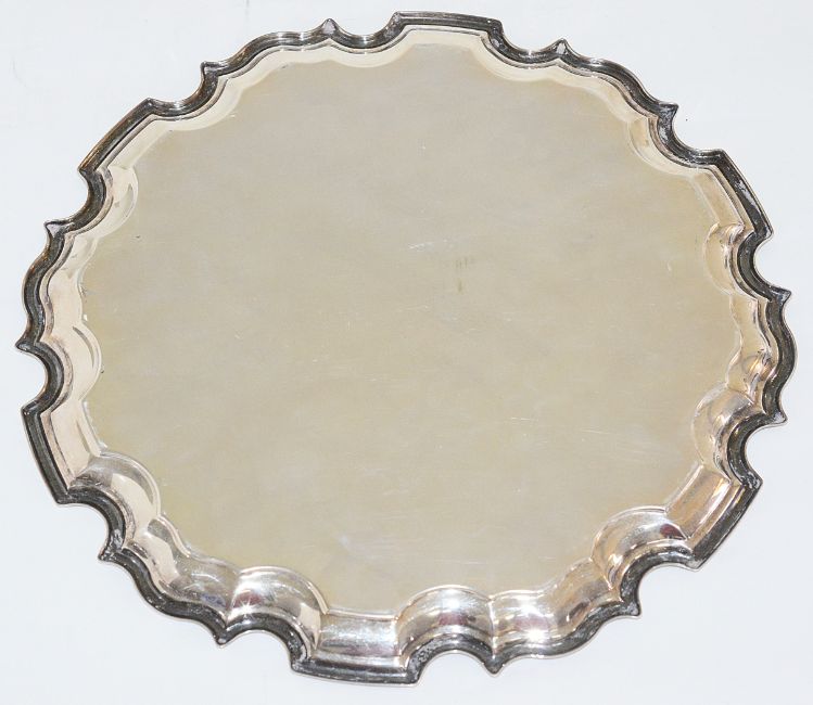 A contemporary pie crust edge silver waiter, hallmarked Sheffield 1992 by Carr's of Sheffield Ltd.