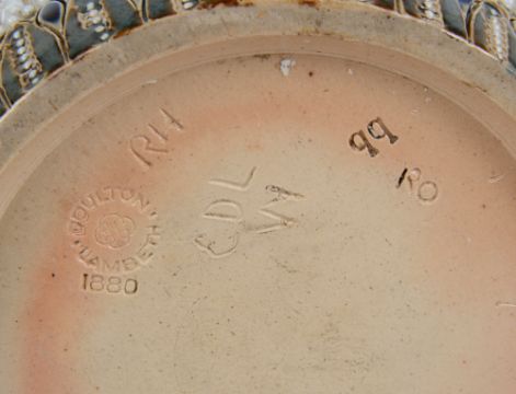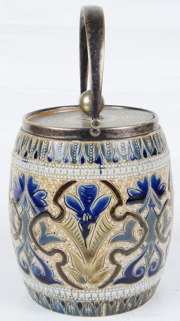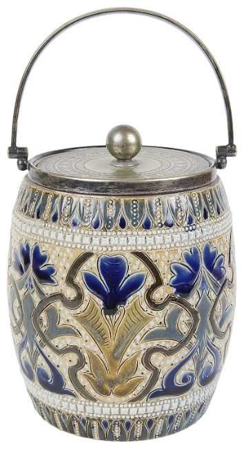 A Doulton Lambeth stoneware biscuit barrel, by Edith D Lupton, circa 1880