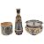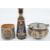 Condition: Fair to good, with minor wear to each, the EPNS plated collar swing handle and lid are tarnished on the condiment pot, some wear to the beaded decoration, a few beads missing from round the roundels on the square beaker, one bead missing from the lower section of the vase.