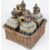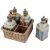 Condition: All bottles with some minor wear but generally in good condition except one which has been broken at the underside of the base and repaired with a staple. Basket dusty and dirty and the handle is broken.