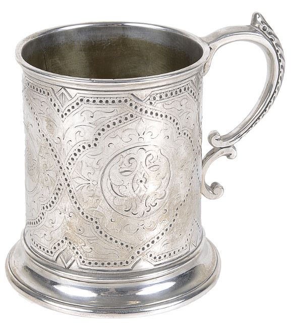 A Victorian silver christening tankard, hallmarked London 1858 by Robert Hennell II