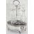 Condition: Fair, with wear and repairs to the silver stand, the central platform has old repairs to the underside and the loop handle is split at the join to the central stem, surface wear to wooden base and bottles, some stoppers with chips to stopper ends.