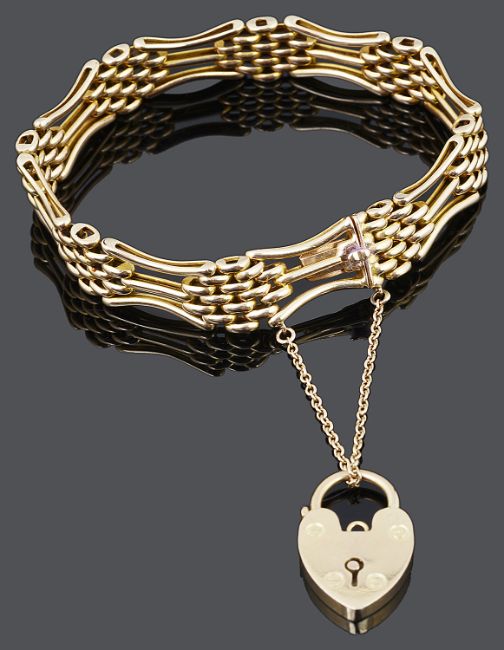 the invisible push clasp marked 15ct, having safety chain with heart shaped padlock clasp marked 9ct.