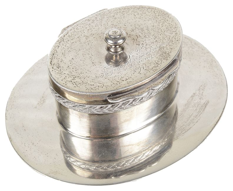 silver weight: 9ozt; 5 x 12.3 x 10.4cm approximately.