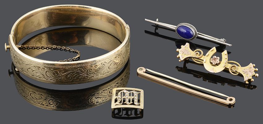 Condition: 9ct bar brooch replacement metal pin, scratches to reverse of bangle