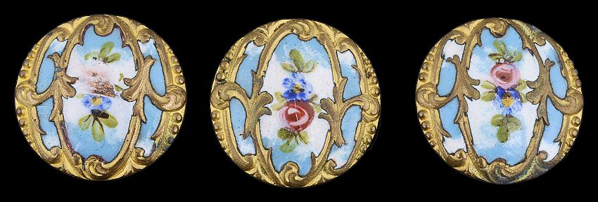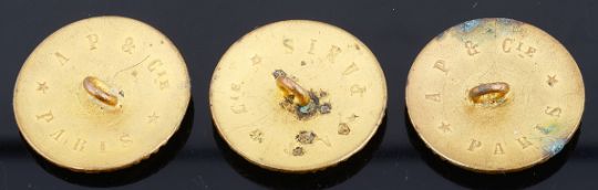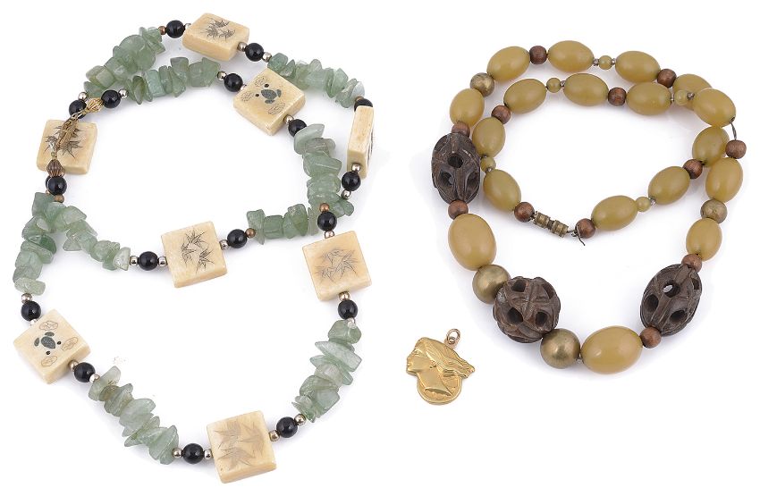 comprising two Art Deco necklaces, together with three 19th Century French gilt and enamel buttons, (qty).