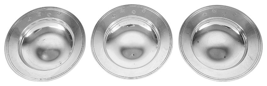 Three contemporary silver Alms dishes, hallmarked London 1972/1973 by Nat Leslie Ltd