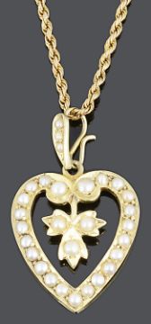 A charming late Victorian 15ct gold and seed pearl heart shaped pendant