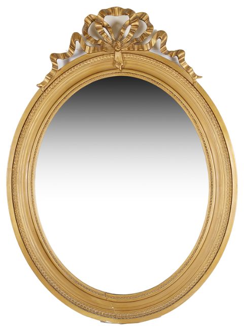 having bevelled plate and moulded frame surmounted by a tied ribbon