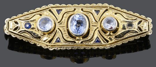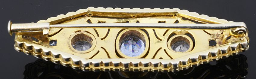 Condition: Much dark small sapphire detail absent, possible pin repair