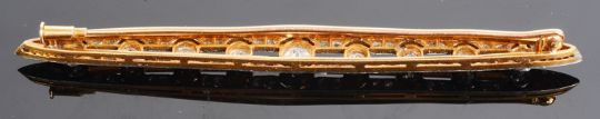 Condition: Overall good, replacement yellow metal pin, tests gold