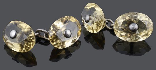 A pair of unusual facetted citrine cufflinks, circa 1900