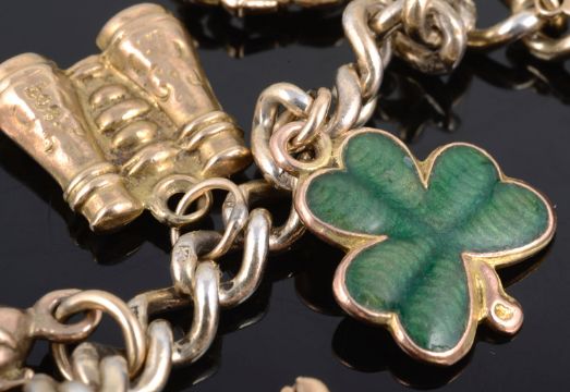 A delicate gold charm bracelet and another charm bracelet