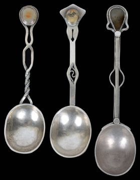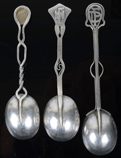 Three rare Arts and Crafts silver spoons,