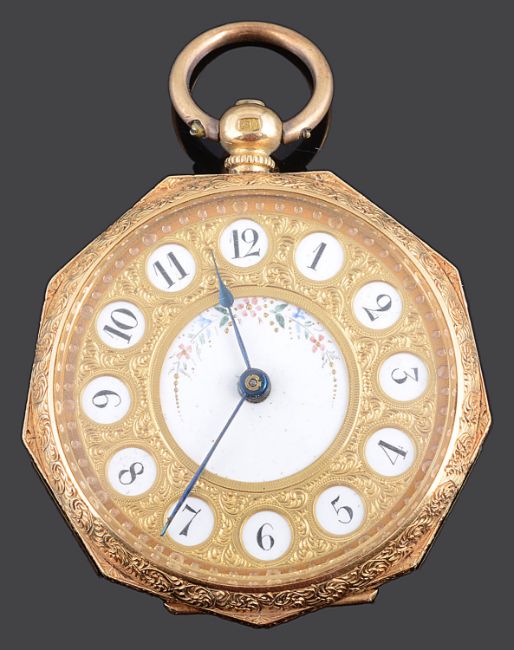 A ladies late 19th century continental 18K gold open faced pocket watch
