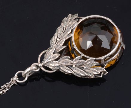 An Arts & Crafts silver and citrine pendant, attributed to Bernard Instone