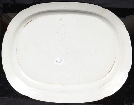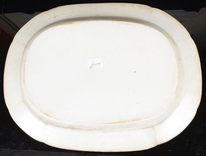 Condition: Light surface ware and scratches commensurate with age and use, light wear to rim, light traces of paint present to backs of smaller meat dish and plate, which should scratch off. Larger meat dish has a stable hairline running through rim approx. length 7 cm., plate with the slightest chip to rim. Second meat dish 44 x 33.5cm, diameter of plate 23cm