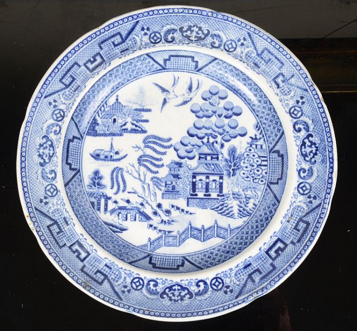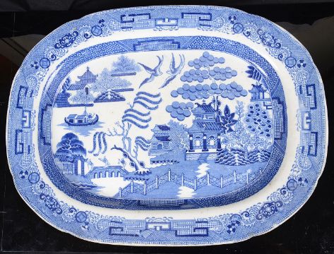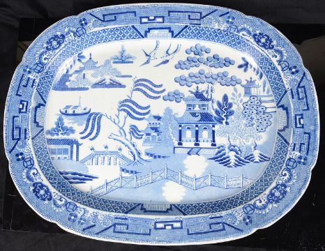 Two early 19th century Staffordshire Pearl ware printed Willow pattern meat dishes c.1830