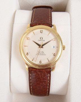 A gentleman's cased 18ct gold Omega DeVille Automatic Chronometer calendar wristwatch