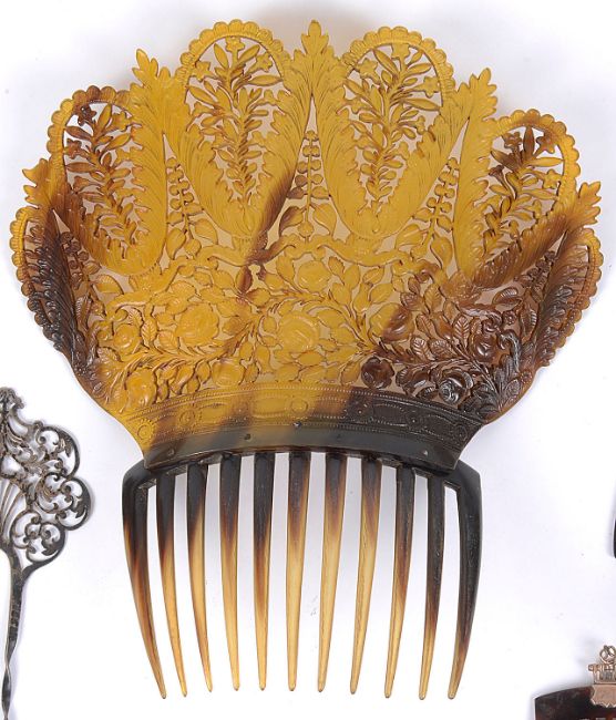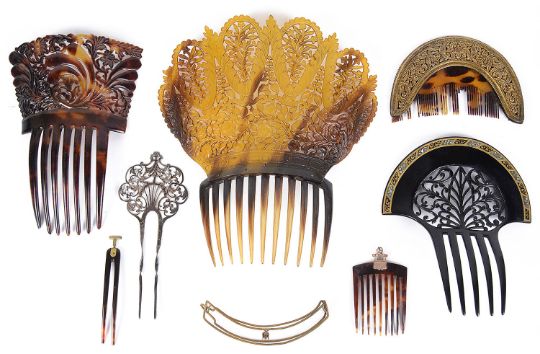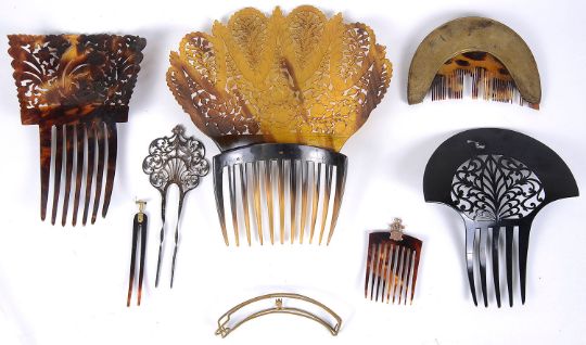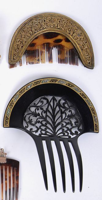 Condition: The former appears to be have fixed on a later horn comb. One of the combs has missing teeth. All with some wear.