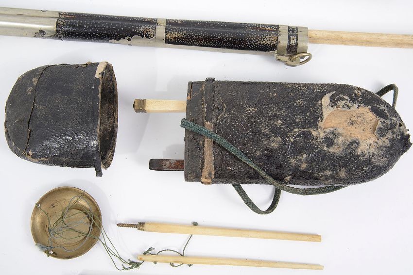 shagreen case - length 32.5 cm., oval case - 18.5 x 9.5 cm