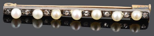 A delicate Continental early 20th Century pearl and rose diamond bar brooch