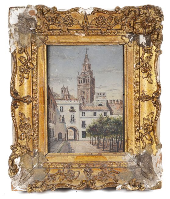 Condition: Former - surface wear, scratches and occasional small chip losses, Spanish cathedral - surface dirt, gesso frame distressed