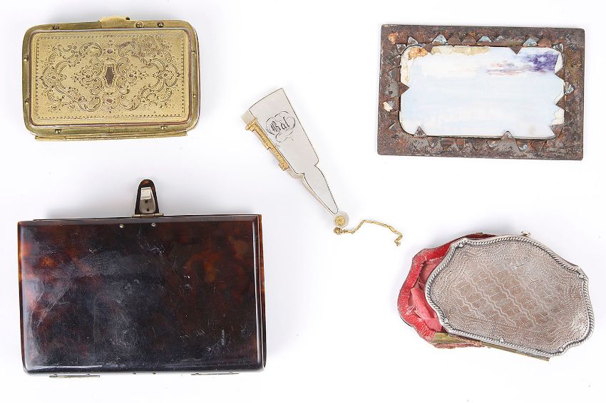 silver purse - 7.5 x 5.5 cm., tortoiseshell aide memoire folder - 7.8 x 10.5 cm.