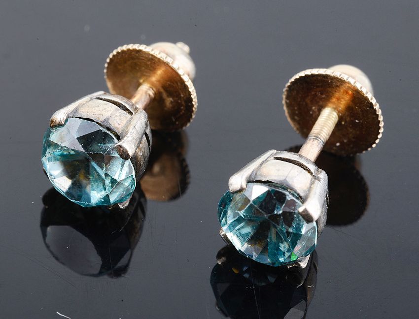 mounts tests for gold, a pair of blue zircon set ear studs, tests for gold, and an initial 'B' button (4)