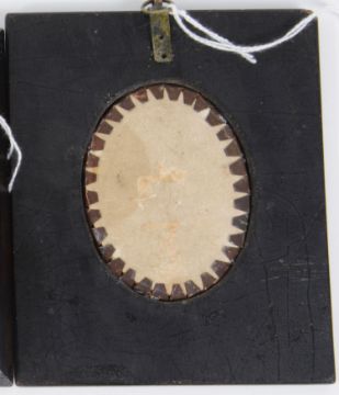 Condition: Portrait miniature of woman - slightly faded, dirt under glass, frame with craquelure and bumps to top left and bottom right corners, engraved portraits - slight chip to one frame