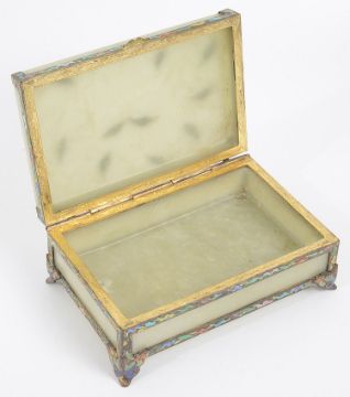 An early 20th Century Chinese celadon jadeite and enamelled silver gilt mounted table cigarette box