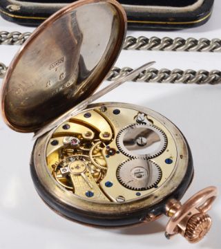 A late 19th century Fr. silver, gold and gunmetal open faced pocket watch