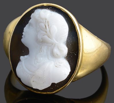 A 19th Century carved hard stone cameo set ring