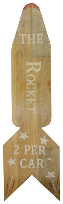 in the form of a rocket painted "The Rocket 2 PER CAR 20p"