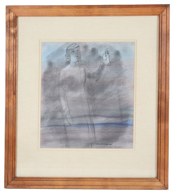 'Study of woman waving with a handkerchief'; mixed media, signed Barnett Freedman 1940, To Christian Barman, mounted, glazed and framed